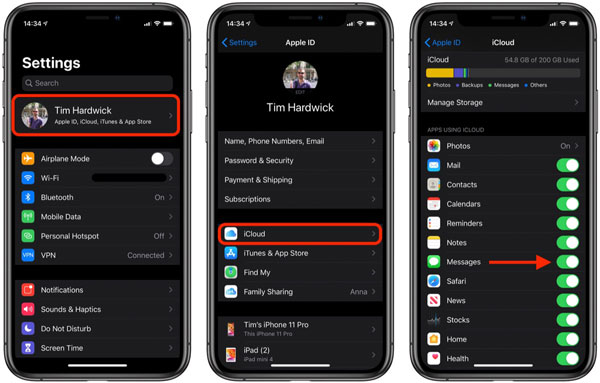 Besides, switching iCloud in Messages button on and off may do the trick, too. You can have a try based on the steps below.