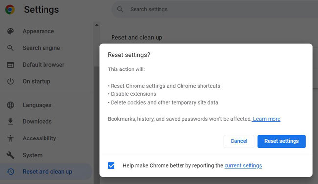 6) Reset browser settings