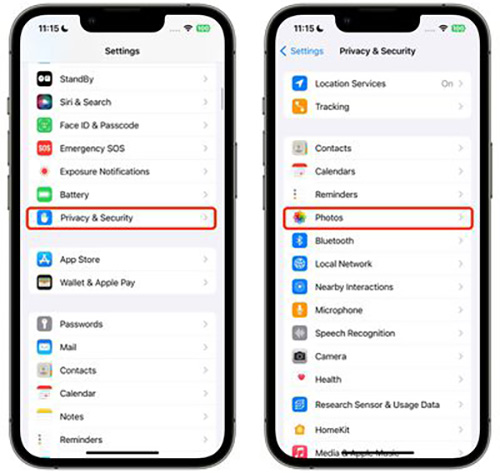 Step 2. Go to Privacy & Security > Photos to review the list of apps with photo access.